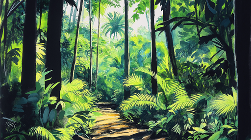 WonderMuralObjavte našu tapetu inšpirovanú tropickou džungľou, kde slnečná cestička prechádza bujnou vegetáciou. Žiarivé odtiene zelenej a dotyky svetla vytvá...