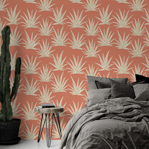 WonderMuralNáš Tapete má krásný vzor aloe vera listů, jemně navržený tak, aby přinesl organický a teplý dotek do vašeho interiéru. Terakota pozadí nabízí půso...