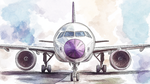 WonderMuralNáš fototapet má krásnou ilustraci moderního letadla, pohled zepředu s jemnými pastelovými barvami, které přinášejí vzdušnou a snovou atmosféru do ...