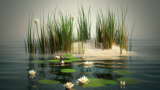 Art'loloTento Tapete s přírodním motivem zachycuje klidný rybník s jemnými lekníny a vysokými rákosemi. Ideální pro přinesení doteku klidu a přírodní krásy...
