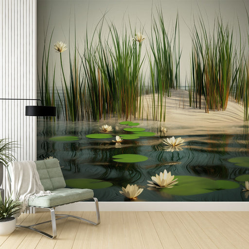 Zobrazit celý detailPřírodní tapeta | Rybník s lekníny a rákosím