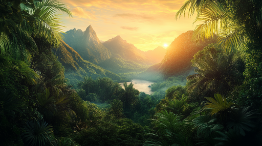 Art'loloPonořte se do nádhera přírody s naší tapetou, která zobrazuje ohromující východ slunce nad tropickým pralesem. Tento poutavý obraz, kde sluneční pa...