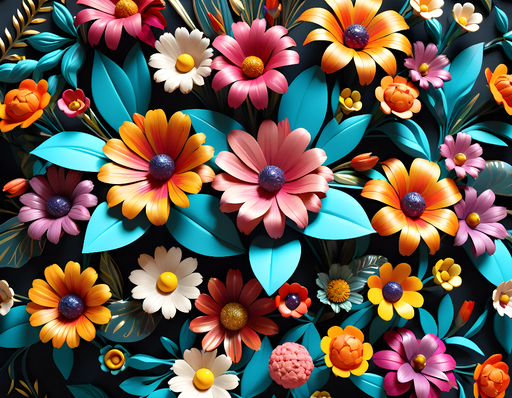 Zobrazit celý detailTapeta s květinovým motivem | Jasně kvetoucí květiny na tyrkysovém pozadí