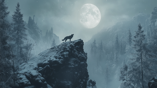 Zobrazit celý detailTapeta s nočním vlkem | Mystická zasněžená krajina