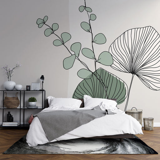 WonderMuralTento tapet zdůrazňuje minimalistický květinový design s motivy stylizovaných listů s jemnými obrysy. Jemné zelené odstíny přidávají dotek klidu, z...