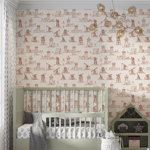 WonderMuralTento tapet evokuje středověké období s okouzlujícím vzorem ilustrovaným hrady a obléhacími stroji, vše v jemných odstínech hnědé a béžové. Každý d...