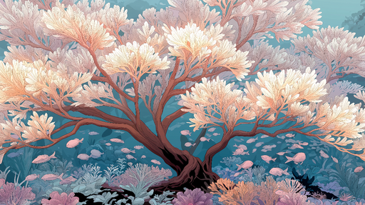 Zobrazit celý detailPodvodní tapeta | Rybí a korálové vzory v jemných odstínech
