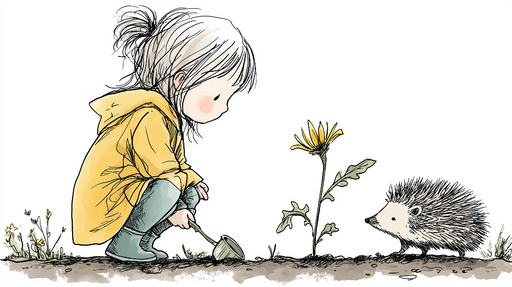 Zobrazit celý detailTapeta pro děti | Něžná scéna s malou dívkou a ježkem