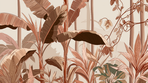 WonderMuralNáše tapeta má elegantní vzor tropického listí, který je zdůrazněn jemnými odstíny růžové a béžové. Jemně nakreslené listy vytvářejí teplou a přívě...