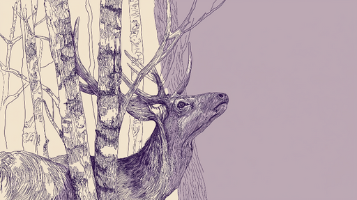 Zobrazit celý detailTapeta s jelenem a stromy | Jemná ilustrace jelena mezi stromy s jemnými liniemi