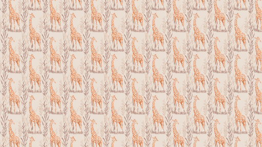 WonderMuralTento tapet má okouzlující vzor žiraf, ilustrovaný v teplých odstínech oranžové, které vynikají proti jemnému pozadí. Obklopeni jemným listím přidá...