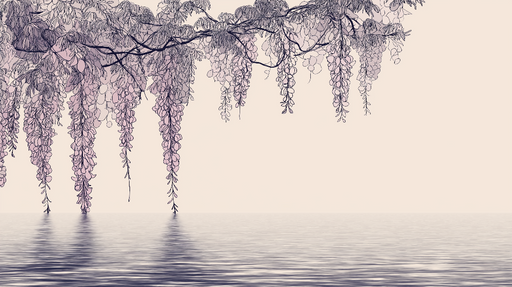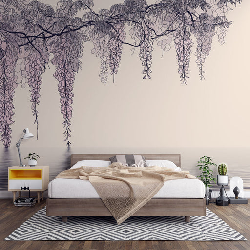 WonderMuralTento jemný fototapet ukazuje shluky wisterie v jemných pastelových odstínech, vytvářející klidnou a romantickou atmosféru. Odstíny fialové a růžov...