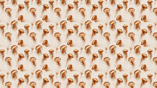 Zobrazit celý detailTapeta medúzy | Elegantní motiv medúz v zlatých odstínech na světlém pozadí