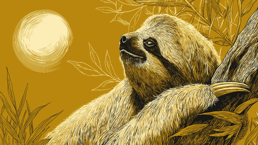 WonderMuralPonořte se do klidu přírody s naší tapetou s elegantním lenošem, pohodlně usazeným proti stromu, s jemným zářením zlatého měsíčního světla v pozadí...