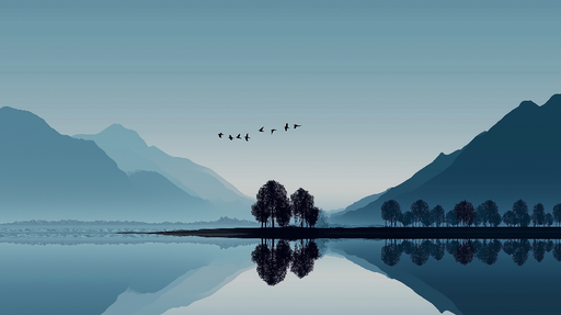 Zobrazit celý detailTapeta vodní krajina | Klidný pohled na jezero s horami a jemnými stromy