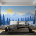 Tato tapeta vyvolává klidnou zimní scénu s majestátními horami a zasněženým jehličnatým lesem. Odstíny modré a bílé vytvářejí uklidňující atmosféru, ideální pro přidání nádechu svěžesti do jakékoli místnosti.