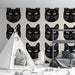 Tapeta kočičí hlavy | Grafický vzor stylizovaných černých kočičích tváří na krémovém pozadí