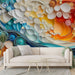 Přidejte do svého interiéru nádech kreativity a barev s našimi geometrickými abstraktními tapetami. Tento originální design obsahuje vlnité tvary a spirály v živých odstínech modré, oranžové a žluté, vytvářející poutavý a dynamický vizuální efekt.