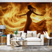 Ponořte svůj prostor do ohnivé energie s naším tapeta tanec ohně. Půvabná a poutavá silueta naznačuje vášnivý tanec uprostřed vířících zlatých plamenů, přinášející pocit pohybu a dynamiky.