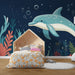 Jasné barvy řas, od červené po žlutou a zelenou, dodávají dynamiku, zatímco delfín přináší veselou a přátelskou notu do vaší interiérové dekorace.