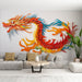 Tento živý a úžasný muralový tapet ukazuje mystické pestrobarevného draka, symbol moci a majestátu. Jeho vlnící se křivky jsou složeny z ohnivých odstínů červené, oranžové a žluté, zvýrazněné doteky modré pro působivou vizuální rovnováhu. Detaily šupin a plamenů vytvářejí dojem pohybu a dynamiky, jako by se drak ožíval na vaší zdi.