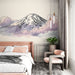 Tento tapet má jemnou ilustraci sopečné hory obklopené oblaky v jemných odstínech růžové a fialové. Kontrast mezi černými liniemi a pastelovými barvami přináší umělecký a moderní dotek, ideální pro vytvoření uklidňující atmosféry.