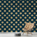 Tapeta s květinovým vzorem v zlaté barvě | Jemné zlaté květiny na tmavě modrém pozadí