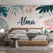 Naše nástěnná tapeta obsahuje krásný květinový vzor kolem jména Alma, včetně listů v odstínech zelené a jemných růžových květů. Tento jarní a dynamický design přináší do každé místnosti radostnou energii. Měkké, neutrální pozadí zvýrazňuje barevné prvky, vytváří přívětivou a uklidňující atmosféru.