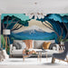 Tento muralový tapet ilustruje nádhernou horskou krajinu, zobrazující slavnou horu Fudži obklopenou stromy a bujnými kopcemi, vše vytvořené s jemným efektem řezaného papíru. Přechody modré a zelené barvy spolu s výraznými texturami vytvářejí uklidňující a poetickou atmosféru.