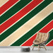 Tento diagonální pruhy tapetový mural přináší dynamický a slavnostní dotek do vašeho interiéru. Červené, zelené a krémově béžové pruhy se střídají v odvážném vzoru, který evokuje radostnou a teplou atmosféru, ideální pro přívětivý a živý prostor.