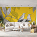 Tapeta ptáci a listy | Monochromatické ptáci na světle žlutém pozadí