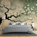 Tento japonský tapetový mural promění váš pokoj v zahradu zen, kde se setkávají příroda a poezie. Elegantně kvetoucí větev třešně vyniká proti texturovanému pozadí evokujícímu starobylé hedvábné svitky, vytvářející atmosféru, která je jak uklidňující, tak sofistikovaná. Úplný měsíc v pozadí tohoto japonského květinového muralového tapetového obrazu přidává rozměr klidu a záře, posilující pocit klidu vycházející z této scény. Přírodní barevná paleta, složená z jemných odstínů zelené a bílé, přináší do prostoru nádech svěžesti a lehkosti, ideální pro podporu relaxace a zamyšlení. Tento japonský inspirativní muralový tapetový obraz je více než jen dekorativní prvek; je to pozvánka k odpočinku a harmonii, inspirující klid a zamyšlení ve vašem osobním útočišti.