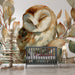 Tapeta soví | Stylizovaná sova obklopená jemnými listy