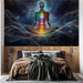 Transformujte svůj prostor s naším úžasným tapetou s duchovní energií. Tento poutavý design zobrazuje meditující postavu s zarovnanými čakrami obklopenou hvězdným vesmírem. Ideální pro meditační místnosti, relaxační prostory nebo jakýkoli interiér inspirovaný spiritualitou.