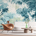 Tapeta tropická | Bujný listový vzor v odstínech modré a zelené