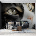 Tato tapetová tapeta zobrazuje fascinující detailní záběr kočky, zdůrazňující její pronikavé oči a jemnou srst. Obraz hraje s kontrasty tmavých a světlých barev, nabízí nápadný vizuální efekt, který přitahuje oko. Přesné detaily srsti a textury nosu přidávají realistický rozměr, který do vašeho prostoru vnáší špetku života.