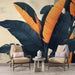 Tato jedinečná tapeta obsahuje živý vzor tropických listů v tmavých tónech, zvýrazněný jasnými oranžovými prvky. Odvážný design vytváří výrazný kontrast, který přináší teplou a dynamickou atmosféru do jakéhokoli prostoru.