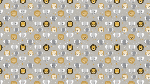 WonderMuralOplev vores charmerende fototapet med søde mønstre af løvehoveder og elefanter på en blød grå baggrund. De delikate og farverige illustrationer til...