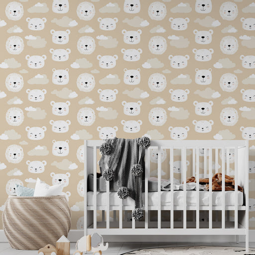 WonderMuralDette fortryllende fototapet har søde ansigter af isbjørne og løver, delikat spredt på en blød beige baggrund. Hver mønster er illustreret med deli...
