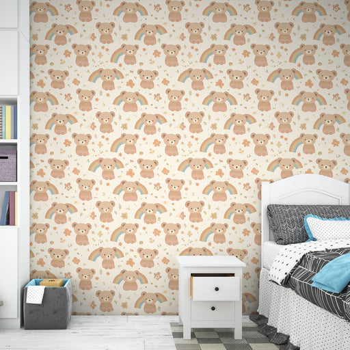 WonderMuralDette fortryllende fototapet har søde bamser omgivet af delikate blomster og farverige regnbuer, perfekt til at skabe en glad og varm atmosfære. De...