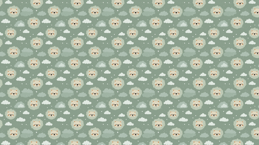 WonderMuralDenne charmerende Fototapet har et legende mønster af smilende løver omgivet af delikate skyer på en beroligende grøn baggrund. Løverne, med deres ...