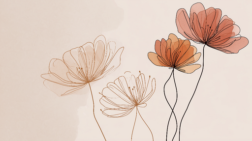 WonderMuralDette smukke fototapet fremhæver et delikat blomstermotiv med sorte omridsillustrationer på en blød baggrund i pastelfarver. Blomsterne, såsom pæon...