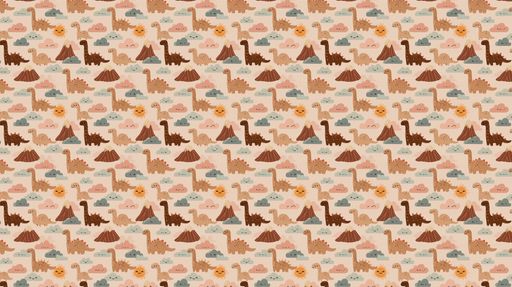 WonderMuralOplev vores tapet med en barnlig stil, tegnet i nuancer af beige og creme med dinosaurer. Det glade mønster viser forskellige typer dinosaurer omgi...