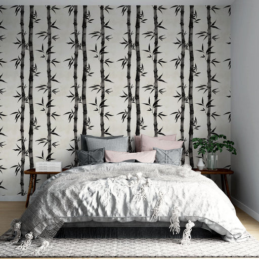 WonderMuralDette fototapet har et elegant design af bambus i nuancer af sort og hvid, fyldt med kunstneriske detaljer, der udtrykker essensen af asiatisk natu...