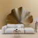 Dette fototapet har et storslået gyldent blad, omhyggeligt detaljeret, der tilføjer et strejf af sofistikering til dit interiør. Den beige gradientbaggrund tilbyder en blød kontrast, der lader bladet skinne, mens det bringer varme og elegance til rummet.