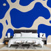 Dette dristige tapet skiller sig ud med sit abstrakte mønster af intense blå flydende former på en blød beige baggrund. De uregelmæssige linjer og organiske kurver skaber en følelse af bevægelse og modernitet, der straks fanger øjet og forvandler enhver væg til et centrum.