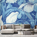Dette tapet har et storslået mønster af blomster og blade i nuancer af blå, hvilket skaber en beroligende og elegant atmosfære. De fint udformede grafiske detaljer giver en fængslende visuel dimension, mens de subtile gradienter mellem de forskellige nuancer af blå tilføjer dybde til det hele.