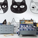Illustreret kattevægmaleri | Stiliserede katteansigter i sort og hvid