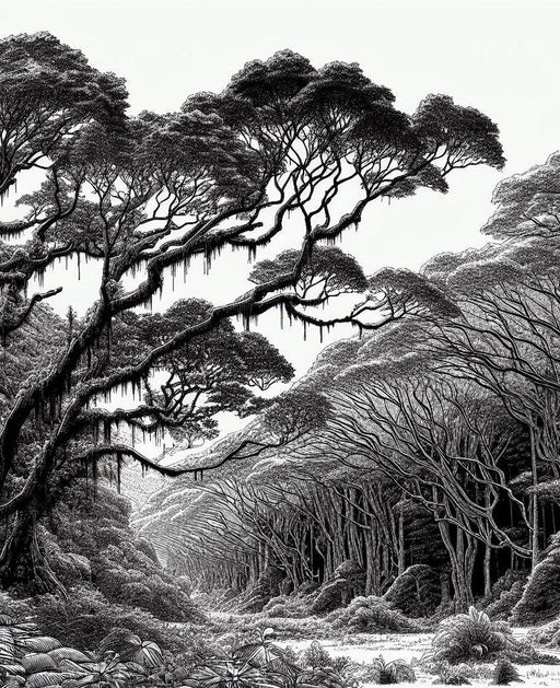 Serenity StudioDenne Skovtapet har et monokromt skovlandskab, hvor legen mellem lys og skygge bringer gamle træer med snoede grene til live. Den detaljerede tegni...