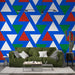 Opdag vores geometriske tapetmaleri med indviklede trekantmønstre i levende farver som blå, rød og grøn. Dette dristige og moderne design er perfekt til at tilføje et strejf af dynamik og modernitet til ethvert rum.